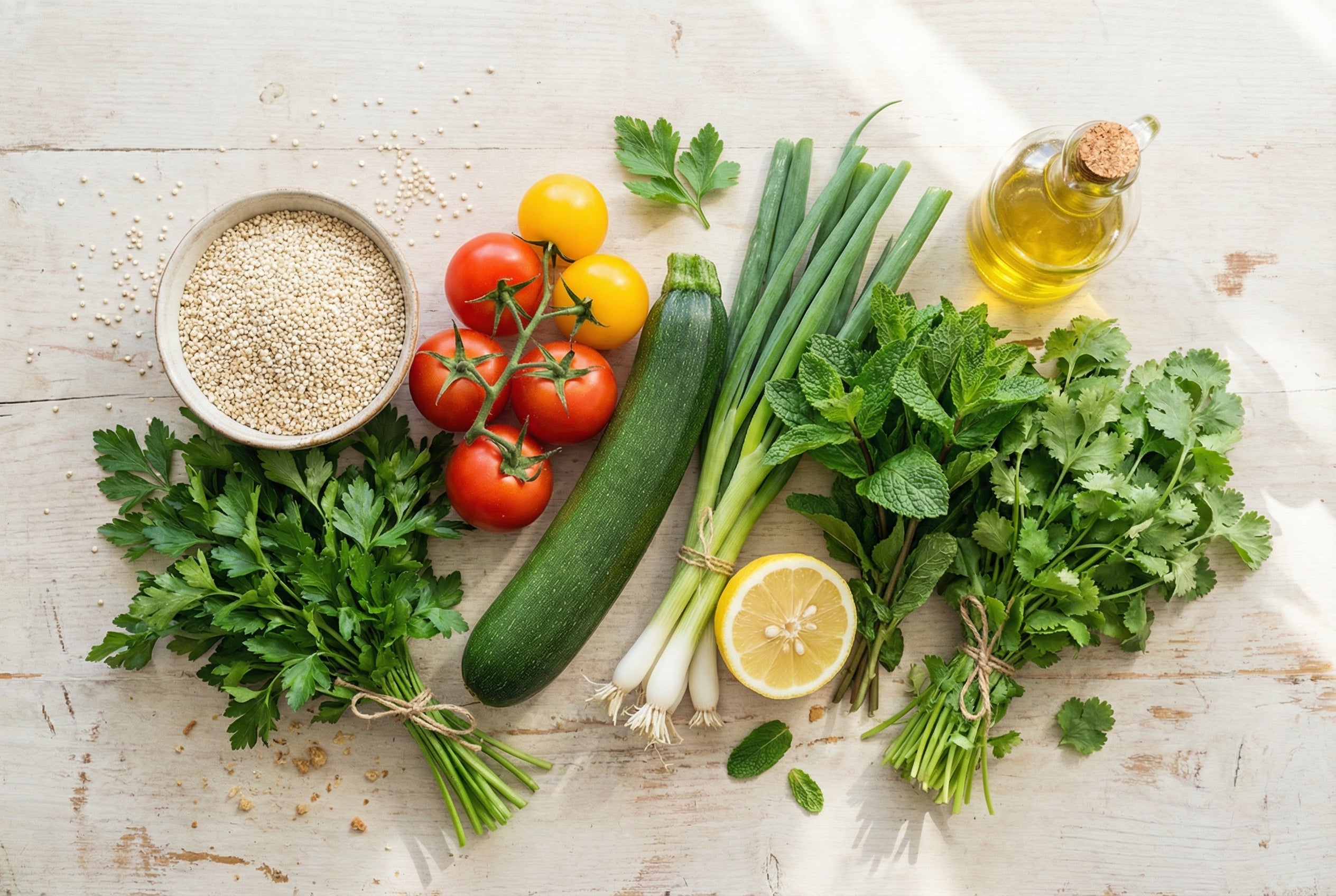 Leichter Quinoa-Kräutersalat mit Zucchini, Tomaten & Zitrone