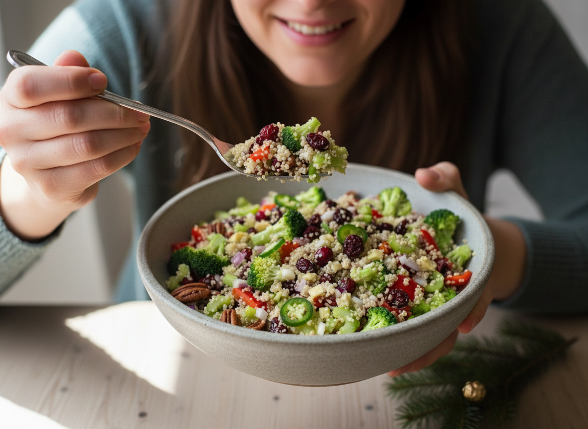 Weihnachtlicher Quinoa-Gemüse-Salat mit Cranberries & Pecans