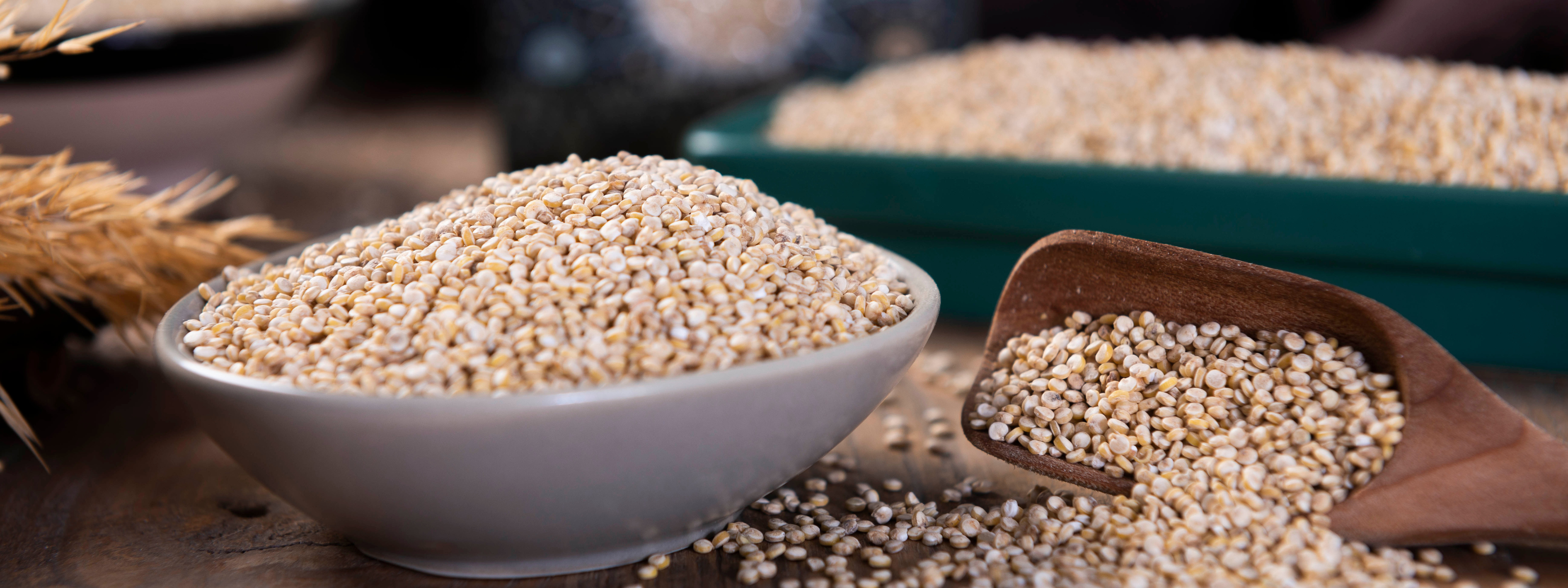 Vollkorn heißt: Wir behalten das ganze Korn inklusive Schale – wo viele Nährstoffe sitzen. Da unsere Quinoa keine Bitterstoffe enthält, bleibt sie im Ganzen lecker und nährstoffreich und überzeugt mit kernigem Biss.